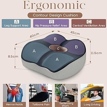 - 특징: 인체공학적 디자인으로 꼬리뼈 부분 압력 감소