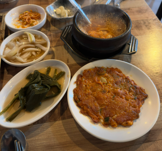 • 넉넉한 인심과 푸짐한 사이드 메뉴: 초돈은 메인 메뉴인 삼겹살뿐만 아니라, 푸짐한 사이드 메뉴로도 유명합니다. 무료로 제공되는 된장찌개와 김치전은 훌륭한 곁들임 메뉴입니다. 특히, 셀프바에서 자유롭게 리필이 가능하다는 점이 매력적입니다. 쌈 채소와 다양한 밑반찬 역시 신선하고 푸짐하게 제공되어 만족도를 높입니다. 삼겹살과 함께 곁들여 먹으면 더욱 풍성한 맛을 즐길 수 있습니다.