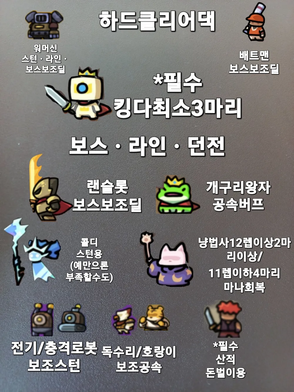 이 영웅들은 게임 진행과 클리어에 큰 도움을 주므로, 우선적으로 획득했다면 운이 좋으시니 열심히 육성해보셔요. 특히 랜슬롯, 냥법사, 개구리 왕자는 고난이도 콘텐츠 클리어에 필수적인 영웅들입니다.