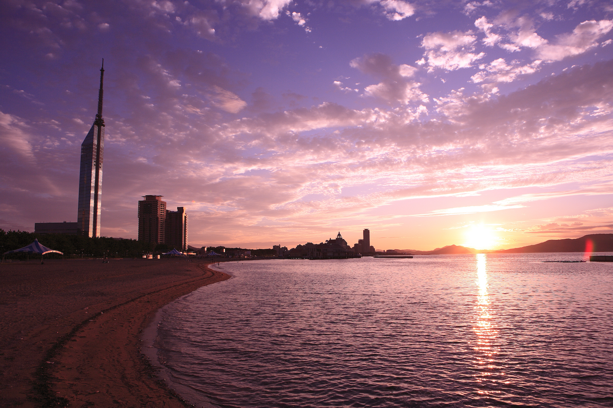 하카타 만에 지는 석양은 모모치 해변의 또 다른 매력 포인트입니다. 해질 무렵 바다에 비치는 도시의 불빛은 환상적인 광경을 연출하여 많은 사진작가들과 연인들의 발길을 이끕니다.