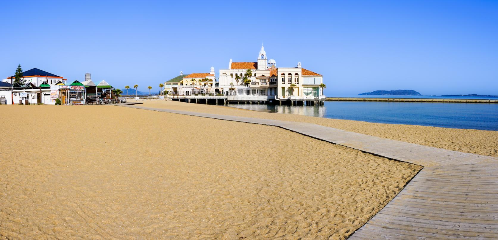 시사이드 모모치 해변 공원(シーサイドももち海浜公園)으로 불리는 이곳은 후쿠오카 타워 북쪽에 펼쳐진 모모치하마 지구와 후쿠오카 페이페이 돔 북쪽의 지교하마 해변 지구, 두 구역으로 나뉘어 있습니다. 인공적으로 조성된 백사장은 도시 한가운데서 해변의 정취를 느낄 수 있는 특별한 공간입니다.